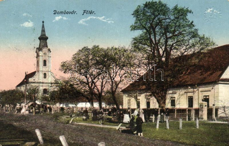 Dombóvár, Fő tér, templom (EK) https://www.darabanth.com/de/257-Fernauktion/257.0/Ansichtskarten/Ungarn~400010/Dombovar-Fo-ter-templom-EK~II1262659