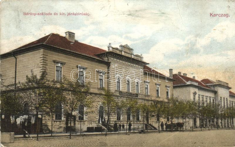 Karcag, Bárány szálloda, Járásbíróság, kiadja Kertész József (EK) https://www.darabanth.com/de/257-Fernauktion/257.0/Ansichtskarten/Ungarn~400010/Karcag-Barany-szalloda-Jarasbirosag-kiadja-Kertesz-Jozsef-EK~II1263894
