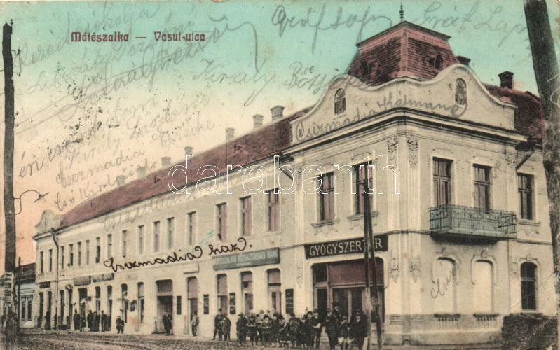 Mátészalka, Vasút utca, gyógyszertár; Weisz Antal kiadása (EB) https://www.darabanth.com/de/257-Fernauktion/257.0/Ansichtskarten/Ungarn~400010/Mateszalka-Vasut-utca-gyogyszertar-Weisz-Antal-kiadasa-EB~II1261532