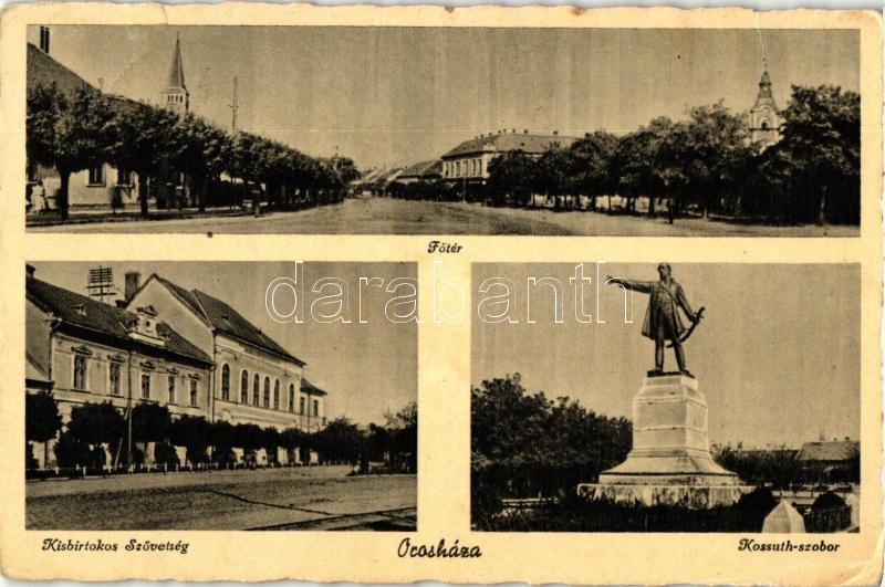 Orosháza, Fő tér, Kisbirtokos Szövetség, Kossuth-szobor (EK) https://www.darabanth.com/de/257-Fernauktion/257.0/Ansichtskarten/Ungarn~400010/Oroshaza-Fo-ter-Kisbirtokos-Szovetseg-Kossuth-szobor-EK~II1241443