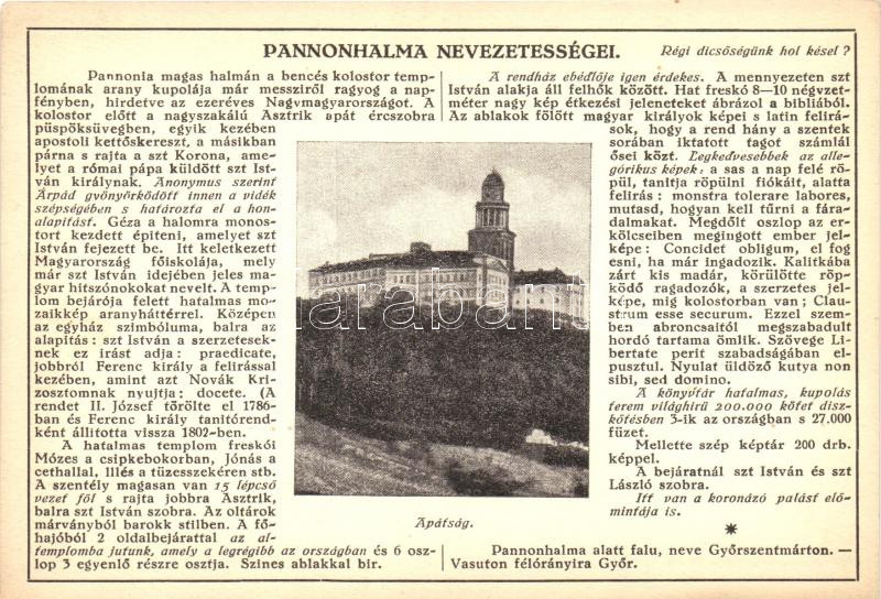 Beschreibung: Pannonhalma nevezetességei, Apátság; kiadja Farkasfalvi Kornél, Monostory felvétele