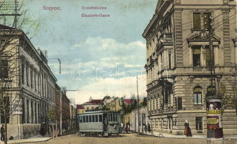 Sopron, Erzsébet utca, villamos (fl) https://www.darabanth.com/de/257-Fernauktion/257.0/Ansichtskarten/Ungarn~400010/Sopron-Erzsebet-utca-villamos-fl~II1263078