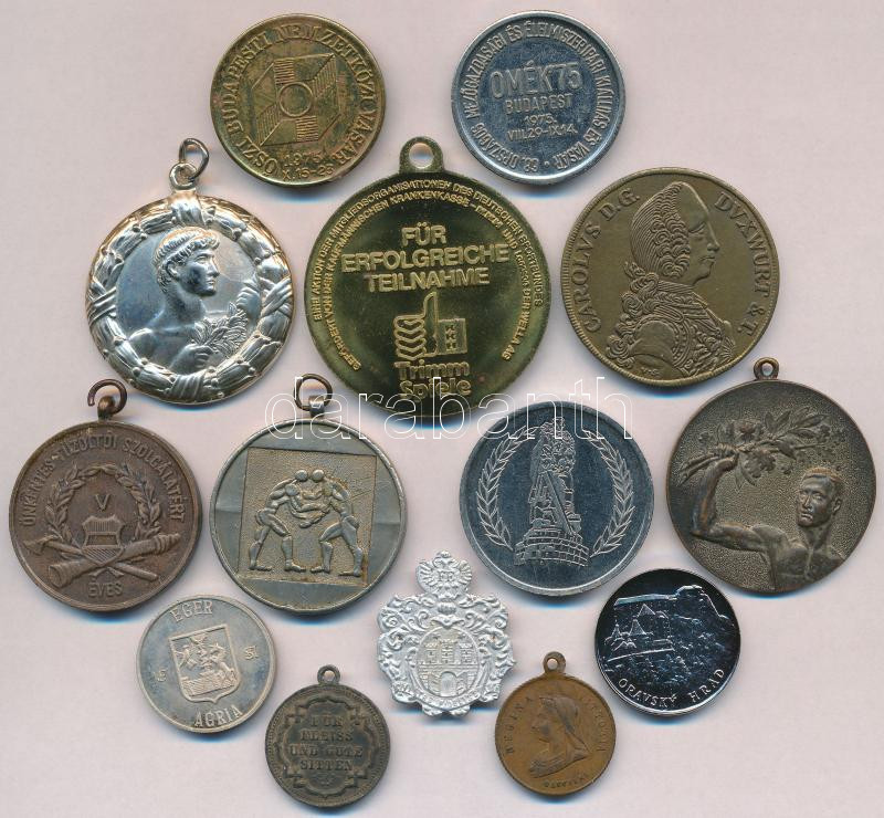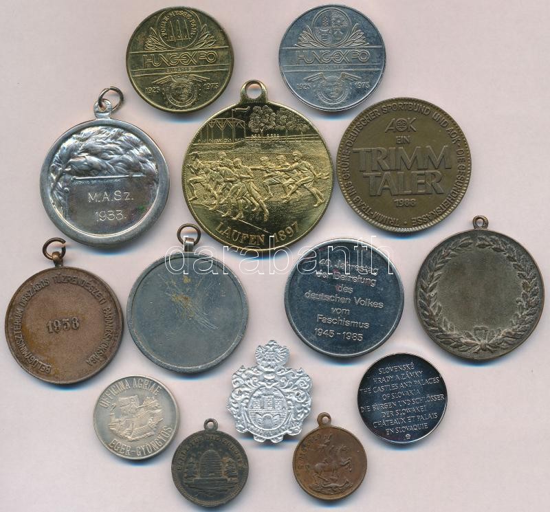 14db vegyes magyar és külföldi emlékérem, sportérem, medál, közte jobb darabok, közte DN "Viktória királynő / Szt. György" Br medál. Szign.: Olivieri T:vegyes