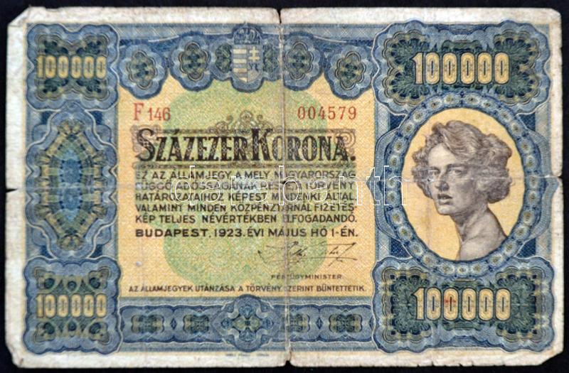 Hungary 1923. 100.000... https://www.darabanth.com/de/257-Fernauktion/257.0/Numismatik/Ungarische-Banknoten~200007/1923-100000K-Orell-Fussli-Zurich-TIII-IV---Hungary-1923-100000-Korona-Orell-Fussli-Zuri~II1264376