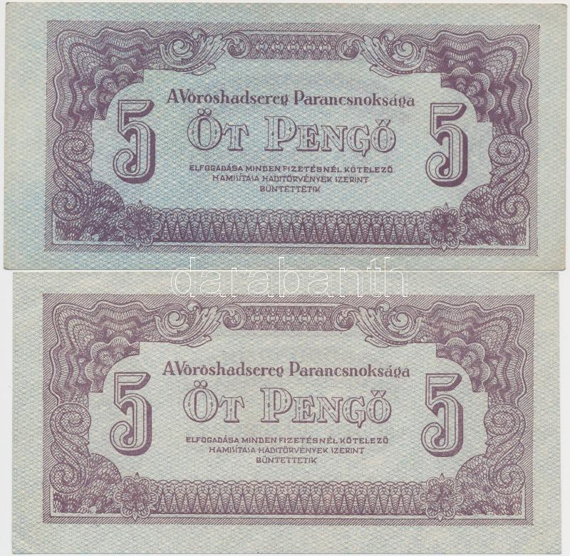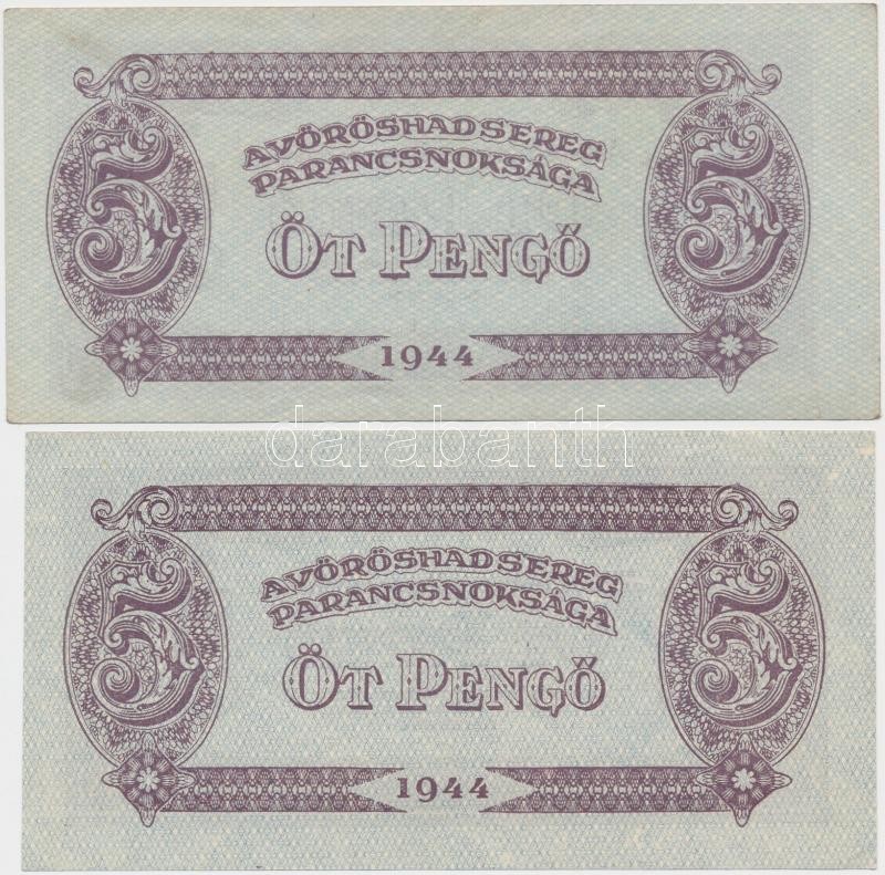 1944. 5P "A Vörös Hadsereg Parancsnoksága" (2x) T:I- https://www.darabanth.com/de/257-Fernauktion/257.0/Numismatik/Ungarische-Banknoten~200007/1944-5P-A-Voros-Hadsereg-Parancsnoksaga-2x-TI-~II1261139