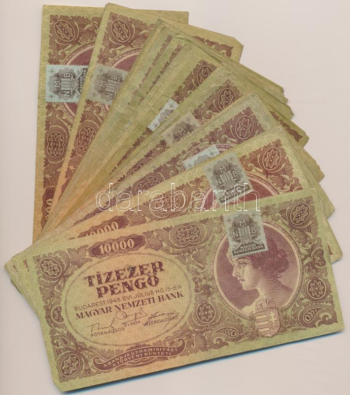 1945. 10.000P (30x) mind "MNB" bélyeggel T:vegyes https://www.darabanth.com/de/257-Fernauktion/257.0/Numismatik/Ungarische-Banknoten~200007/1945-10000P-30x-mind-MNB-belyeggel-Tvegyes~II1261031