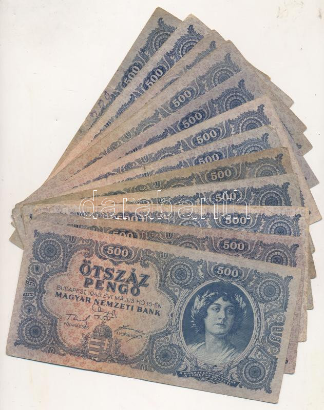 1945. 500P (30x) T:vegyes https://www.darabanth.com/de/257-Fernauktion/257.0/Numismatik/Ungarische-Banknoten~200007/1945-500P-30x-Tvegyes~II1261360