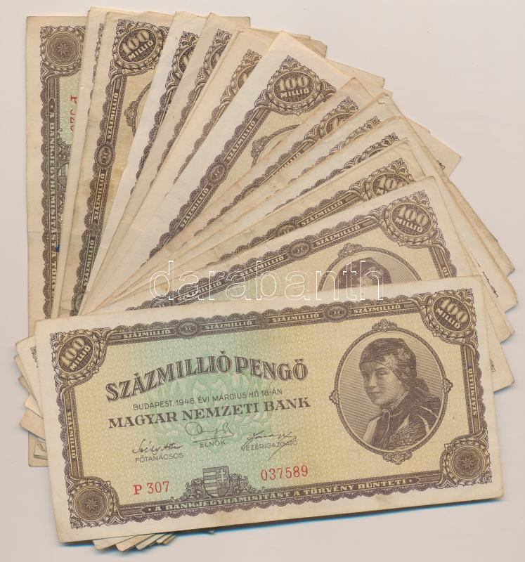 1946. 100.000.000P (30x) T:vegyes https://www.darabanth.com/de/257-Fernauktion/257.0/Numismatik/Ungarische-Banknoten~200007/1946-100000000P-30x-Tvegyes~II1261158
