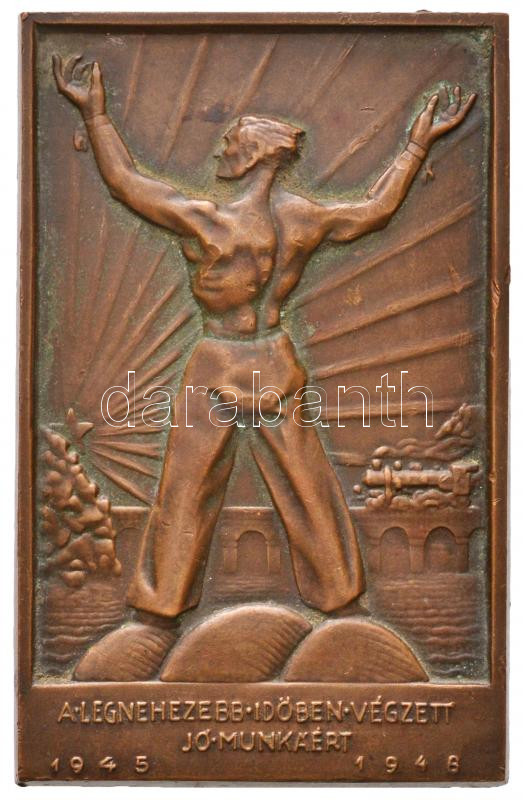 1948. "A legnehezebb időben végzett jó munkáért 1945-1948" Br plakett (84x54mm) T:2,2- ph.