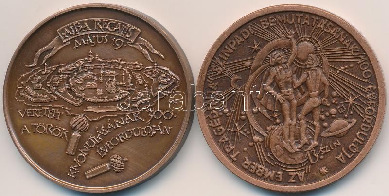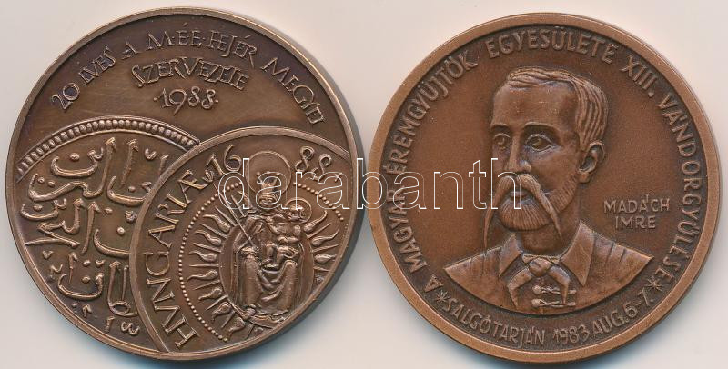 Garamkeszi János (1936-) 1983. "MÉE XIII. Vándorgyűlése Salgótarján / Madách Imre - Az Ember tragédiája" Br emlékérem (42,5mm) + Fritz Mihály (1947-) 1988. "20 éves a MÉE Fejér Megyei Szervezete / Veretett a török kivonulásának 300. évfordulóján" Br emlékérem (42,5mm) T:1,2