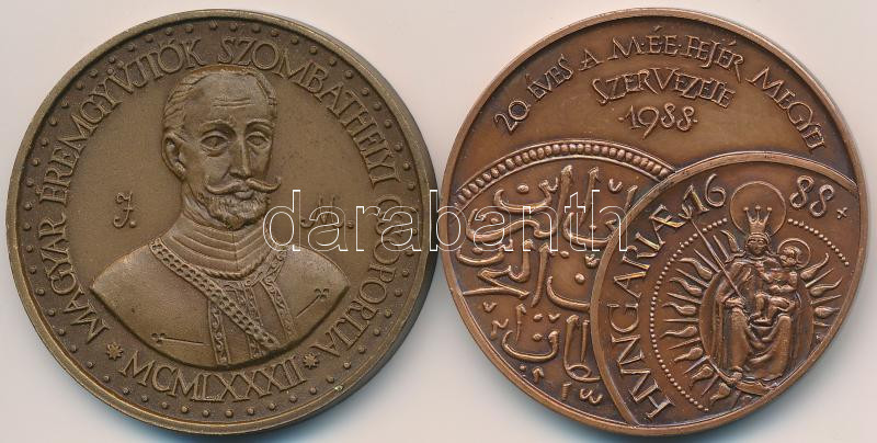 Kiss Sándor (1925-1999) 1982. "Magyar Éremgyűjtők Szombathelyi Csoportja - Kőszeg" Br emlékérem (42,5mm) + Fritz Mihály (1947-) 1988. "20 éves a MÉE Fejér Megyei Szervezete / Veretett a török kivonulásának 300. évfordulóján" Br emlékérem (42,5mm) T:1,2