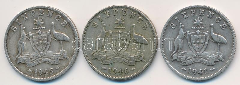 Australia 1941-1... https://www.darabanth.com/de/257-Fernauktion/257.0/Numismatik/Weltweit-Munzen~200012/Ausztralia-1941-1946-6P-Ag-VI-Gyorgy-3x-T2-3--Australia-1941-1946-6-Pence-Ag-George-VI-~II1260084