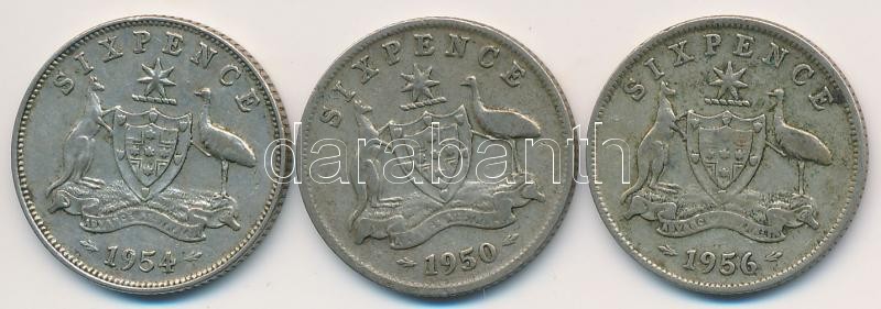 Australia 1950-1956. 6 Pence Ag (3x) "George VI" + "Elizabeth II" C:VF,F
