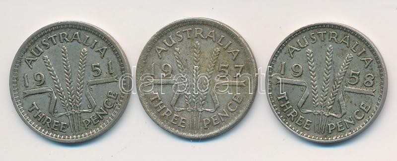 Ausztrália 1951-1958. 3p Ag (3x) "VI. György" + "II. Erzsébet" T:2,2-,... https://www.darabanth.com/de/257-Fernauktion/257.0/Numismatik/Weltweit-Munzen~200012/Ausztralia-1951-1958-3p-Ag-3x-VI-Gyorgy-plus-II-Erzsebet-T2-2-3--Australia-1951-1958-3-P~II1260026