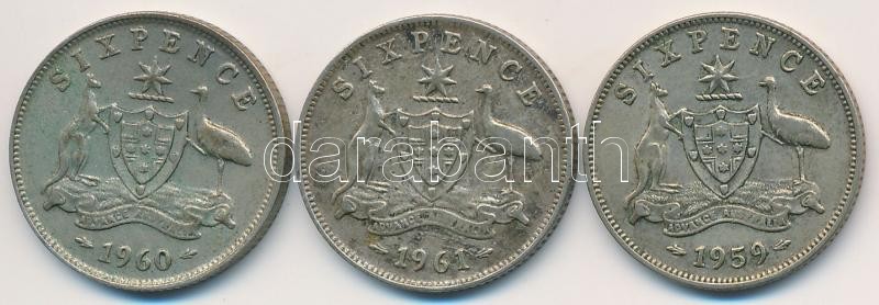Australia 1959... https://www.darabanth.com/de/257-Fernauktion/257.0/Numismatik/Weltweit-Munzen~200012/Ausztralia-1959-1961-6P-Ag-II-Erzsebet-3x-T2-3--Australia-1959-1961-6-Pence-Ag-Elizabeth~II1260132