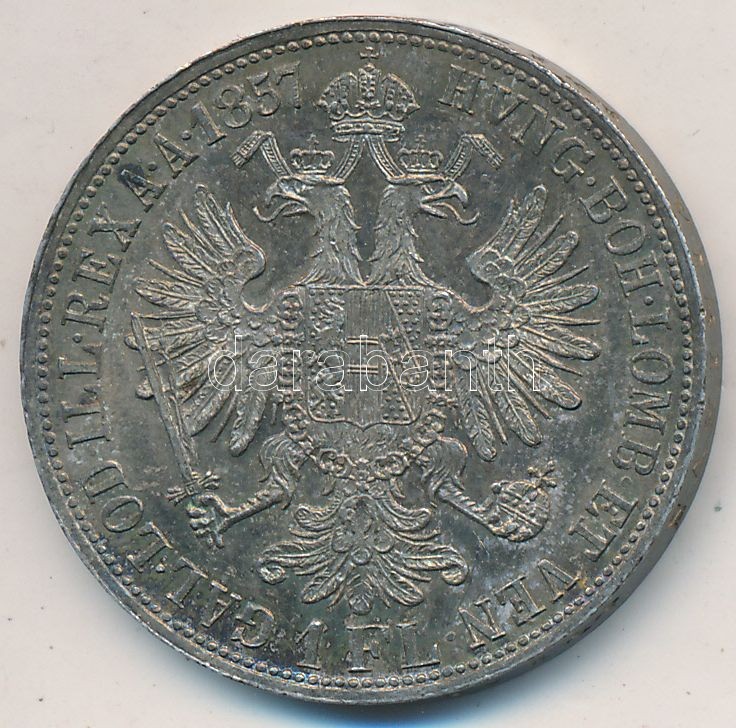 Austria 1... https://www.darabanth.com/de/257-Fernauktion/257.0/Numismatik/Weltweit-Munzen~200012/Ausztria-1857A-1Fl-Ag-Ferenc-Jozsef-T2-kis-patina-es-ph--Austria-1857A-1-Florin-Ag-Franz-Jose~II1261679