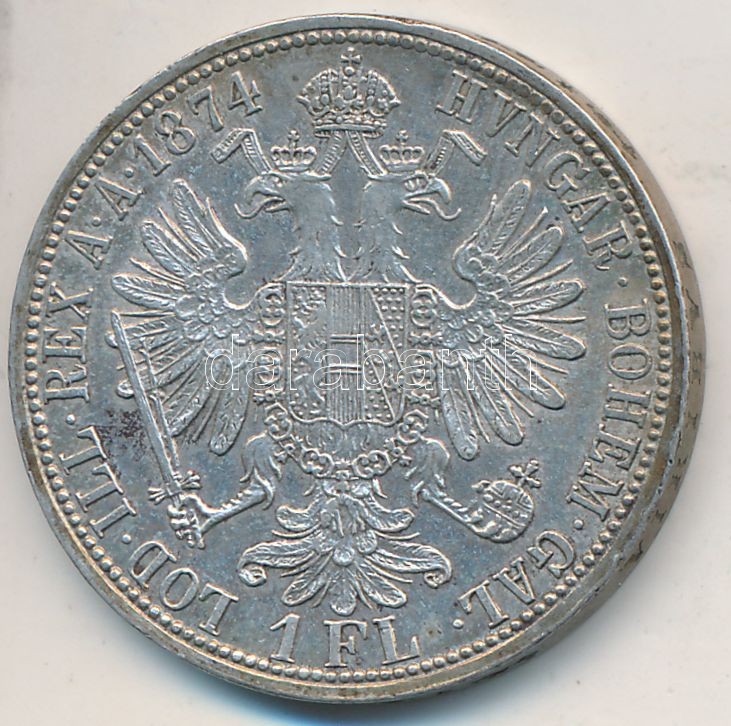 Austria 1874. 1 Florin ... https://www.darabanth.com/de/257-Fernauktion/257.0/Numismatik/Weltweit-Munzen~200012/Ausztria-1874-1Fl-Ag-Ferenc-Jozsef-T2-ph--Austria-1874-1-Florin-Ag-Franz-Joseph-CXF-edge-e~II1261980