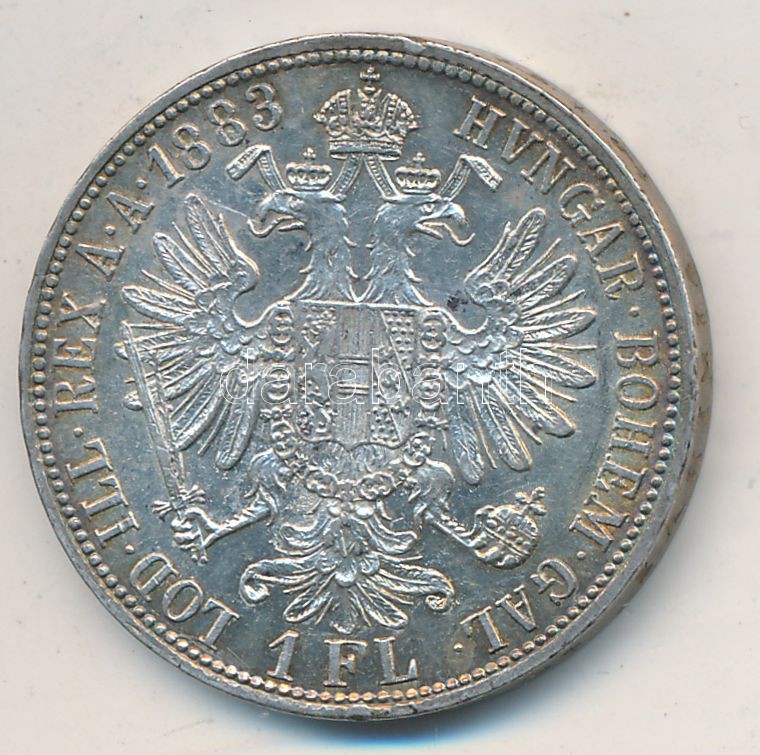 Austria 1883. 1 Florin ... https://www.darabanth.com/de/257-Fernauktion/257.0/Numismatik/Weltweit-Munzen~200012/Ausztria-1883-1Fl-Ag-Ferenc-Jozsef-T2-ph--Austria-1883-1-Florin-Ag-Franz-Joseph-CXF-edge-e~II1262138