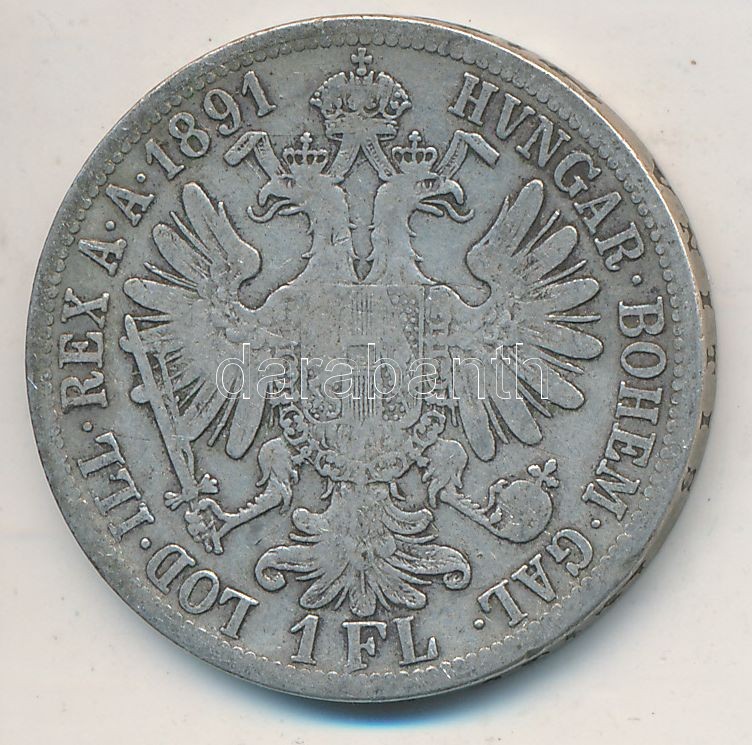 Austria 1891. 1 ... https://www.darabanth.com/de/257-Fernauktion/257.0/Numismatik/Weltweit-Munzen~200012/Ausztria-1891-1Fl-Ag-Ferenc-Jozsef-T2-3-kis-ph--Austria-1891-1-Florin-Ag-Franz-Joseph-CVF~II1262155