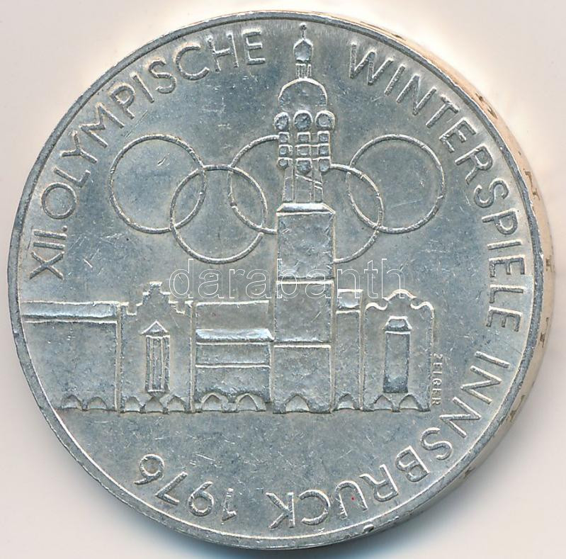 Austria 1976. 100 Schilling Ag "Winter Olympics Innsbruck / Buildings and Olympic logo" C:XF