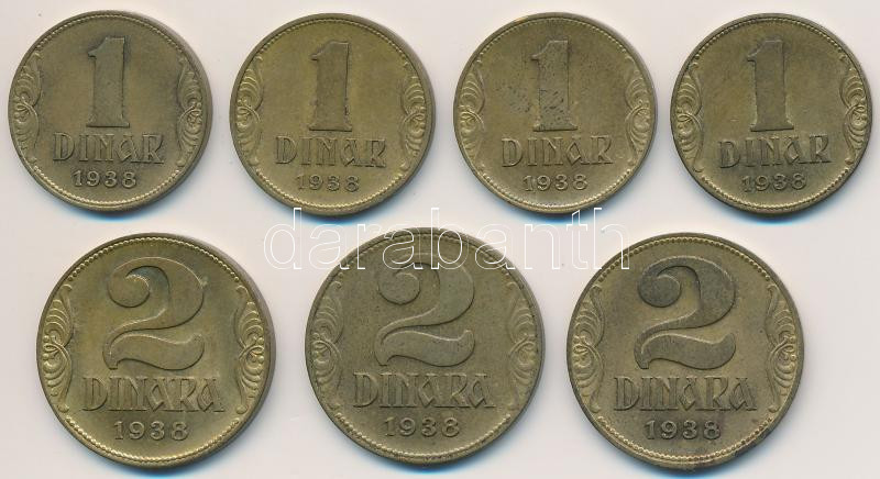 Jugoszlávia 1938. 1D Al-Br (4x) + 2D Al-Br (3x) T:2