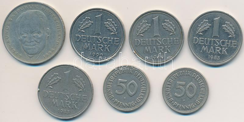 Beschreibung: NSZK / Németország 1950-1994. 50pf (2xklf) + 1M (4xklf) + 2M T:2,2-