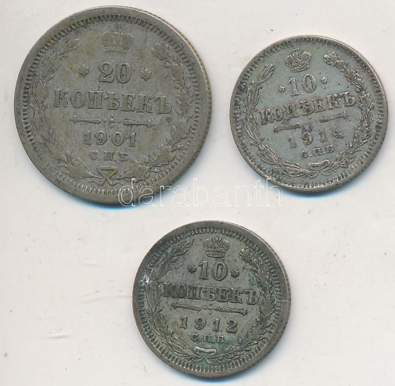 Beschreibung: Orosz Birodalom 1901. 20k Ag + 1912-1914. 10k Ag (2x) T:2-,3