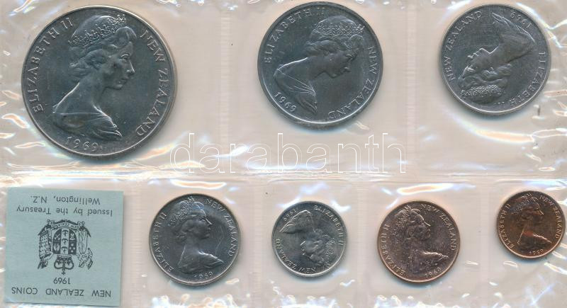 Zew Zealand 1969. 1 Cent - 1 Dollar (7xdiff) commemorative coin set "200th Anniversary - Captain Cook's Voyage" in original case with certificate C:UNC