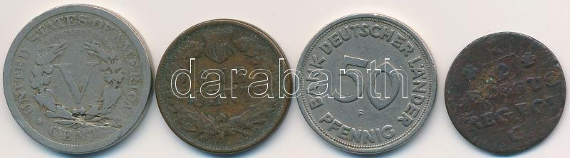 Beschreibung: Vegyes: Amerikai Egyesült Államok 1896. 1c Br "Indián" + 1910. 5c Cu-Ni + NSZK 1949F 50pf Cu-Ni + Lengyel Királyság 1768. 1/2gr Cu T:2,2-,3