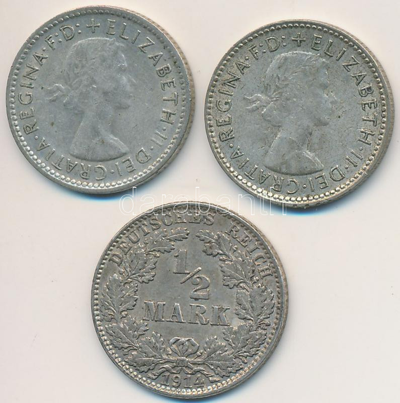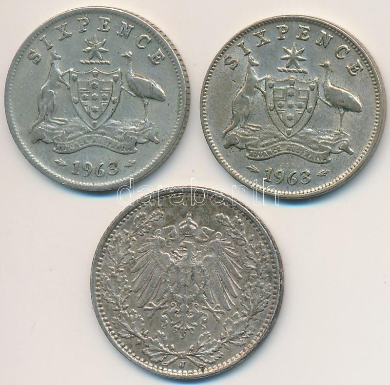 Vegyes: Ausztrália 1963. 6P Ag (2x) + Német Birodalom 1914J 1/2M Ag T:2,2-