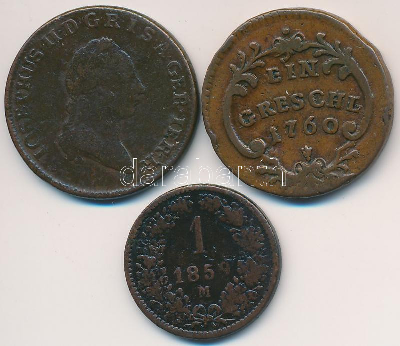 Vegyes: Ausztria 1859M 1kr Cu + Csehország / Történelmi tartomány 1760. 1 Garas Cu + Magyarország 1780S 1kr Cu "II. József" T:2-,3
