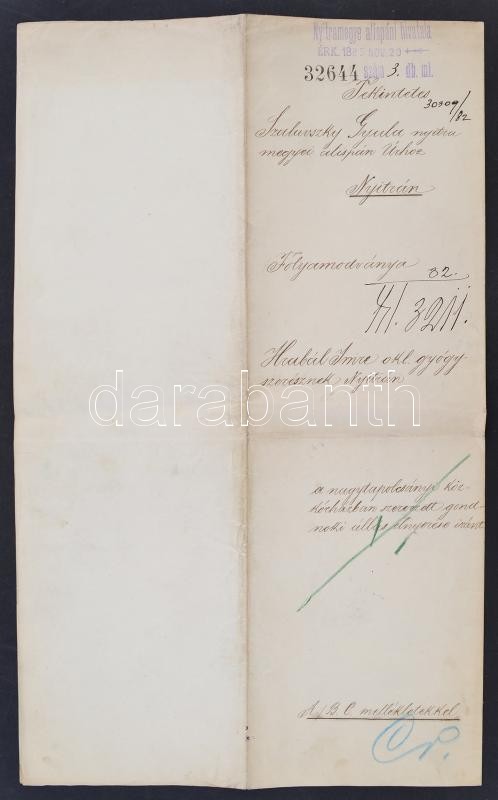 1885 Nyitrai gyógyszerész kérvénye a nagytapolcsányi kórház gondoki ál... https://www.darabanth.com/de/258-Fernauktion/258.0/Andere-Sammelgebiete/Dokument~15/1885-Nyitrai-gyogyszeresz-kervenye-a-nagytapolcsanyi-korhaz-gondoki-allasert~II1245141
