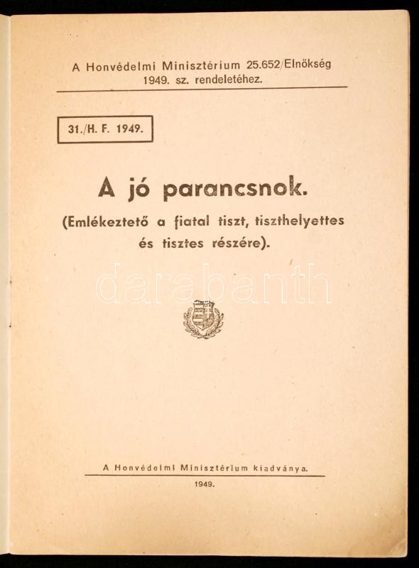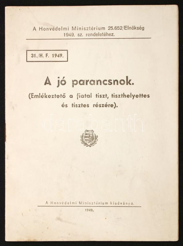 1949 A jó parancsnok. Emlékeztető a fiatal tiszt, tiszthelyettes és ti... https://www.darabanth.com/de/258-Fernauktion/258.0/Andere-Sammelgebiete/Drucksachen~26/1949-A-jo-parancsnok-Emlekezteto-a-fiatal-tiszt-tiszthelyettes-es-tisztes-reszere-24p~II1256947