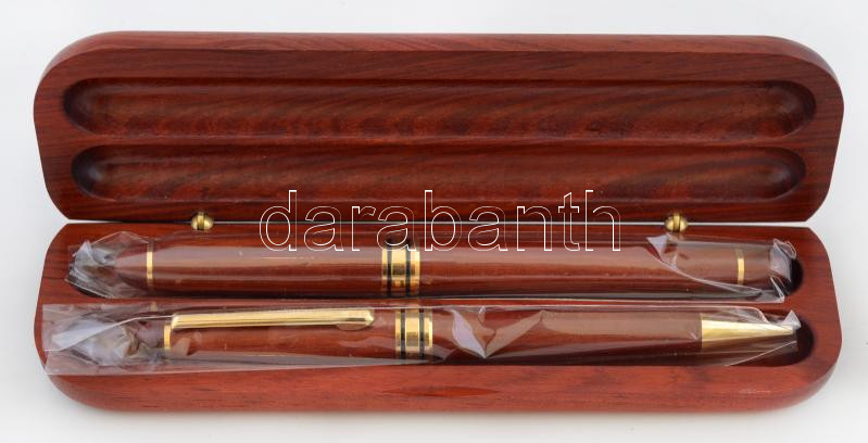 Beschreibung: Igényes, fából készült tartóban, fa mintázatú toll és töltőceruzából álló készlet, új állapotban / Set of ballpen and fountain-pencil in wood case