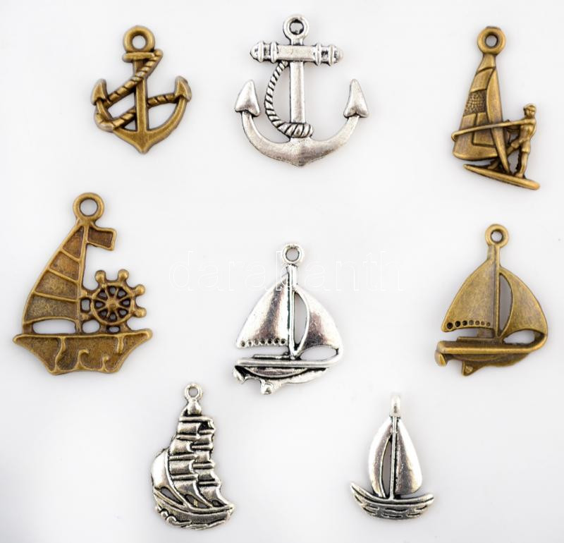 Beschreibung: Tengerész stílusú fém medálok, 8 db