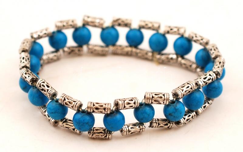 Beschreibung: Türkiz gyöngyökkel díszített nyaklánc és karkötő, 2 db