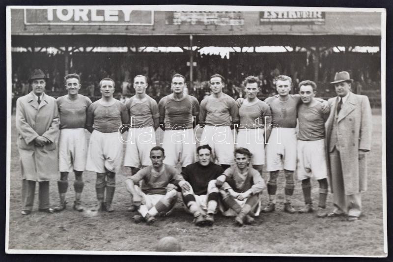Beschreibung: 1940 Beszkárt csapat fotó, Pobuda Alfréd által jelzett fotó, 11x17cm