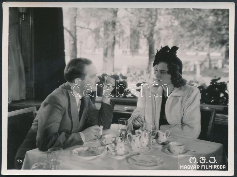 Beschreibung: 1941 Tolnay Klári és partnere a Gentryfészek című filmben, MFI pecséttel, feliratozva, 8,5x12 cm