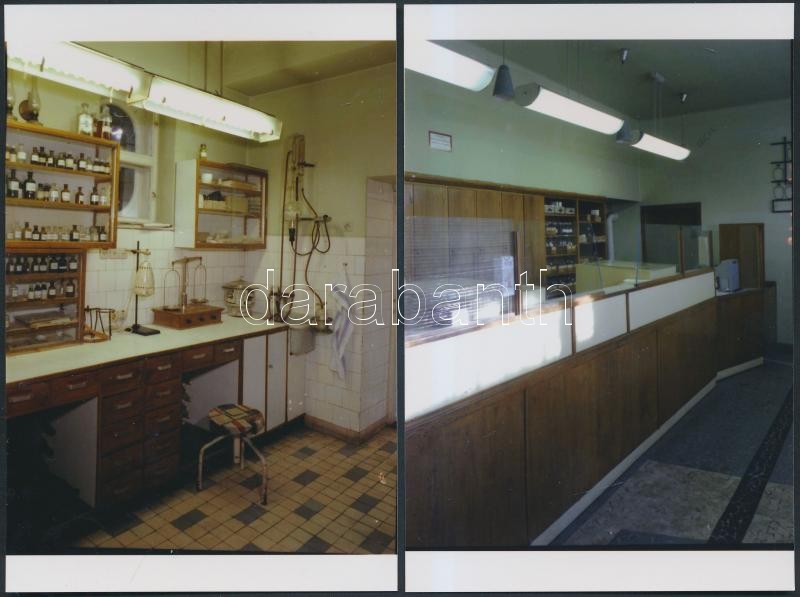 Beschreibung: 1981 Budapesti gyógyszertár kívül-belül (II. ker., Szilágyi Erzsébet fasor), 8 db korabeli negatívról készült modern nagyítás 10x15 cm-es fotópapíron