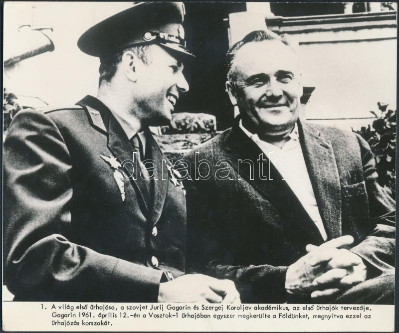 Jurij Gagarin űrhajós és Szergej Koroljev akadémikus, feliratozott saj... https://www.darabanth.com/de/258-Fernauktion/258.0/Andere-Sammelgebiete/Foto~18/Jurij-Gagarin-urhajos-es-Szergej-Koroljev-akademikus-feliratozott-sajtofoto-20x24-cm~II1266516
