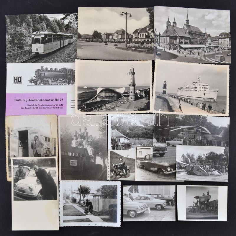 Beschreibung: cca 1940-80 Vegyes, közlekedési eszközökkel kapcsolatos fotók, fotólapok, nyomtatványok, 17db, különböző méretben és minőségben, 9x6cm és 15x10cm