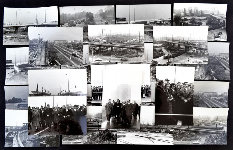 Beschreibung: cca 1970 Budapest, Kacsóh Pongrácz úti csomópont építése és átadása, 33 db fénykép, 9x13 cm