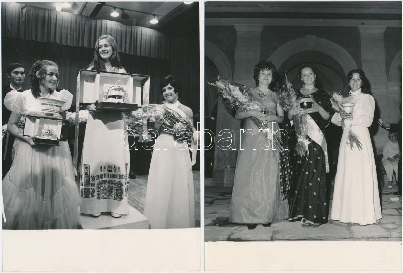 Beschreibung: cca 1972-1975 A füredi Anna-bál és nyertesei. 3 db fotó, ebből egy a hátoldalán pecséttel, 13x19 cm