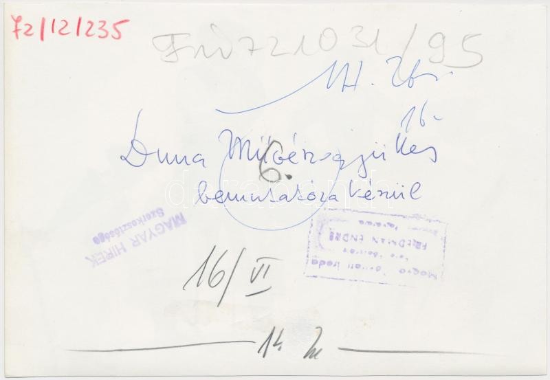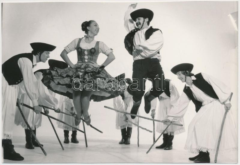 Beschreibung: cca 1972 Duna Művészegyüttes bemutatóra készül. Friedman Endre felvétele. A hátoldalon pecséttel jelzett. 18x12,5 cm.