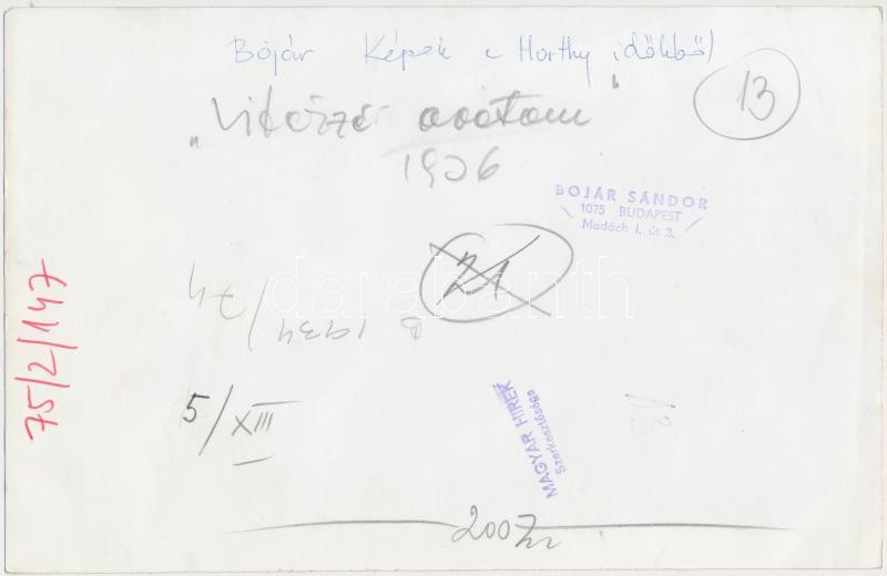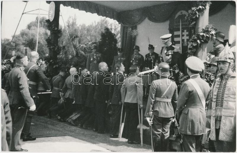 cca 1975 Horthy Miklós kormányzó vitézeket avat a Margitszigeten 1936 május 24-én. Bojár Sándor felvétele, későbbi előhívás. Hátoldalán pecséttel jelzett. 24x16 cm.