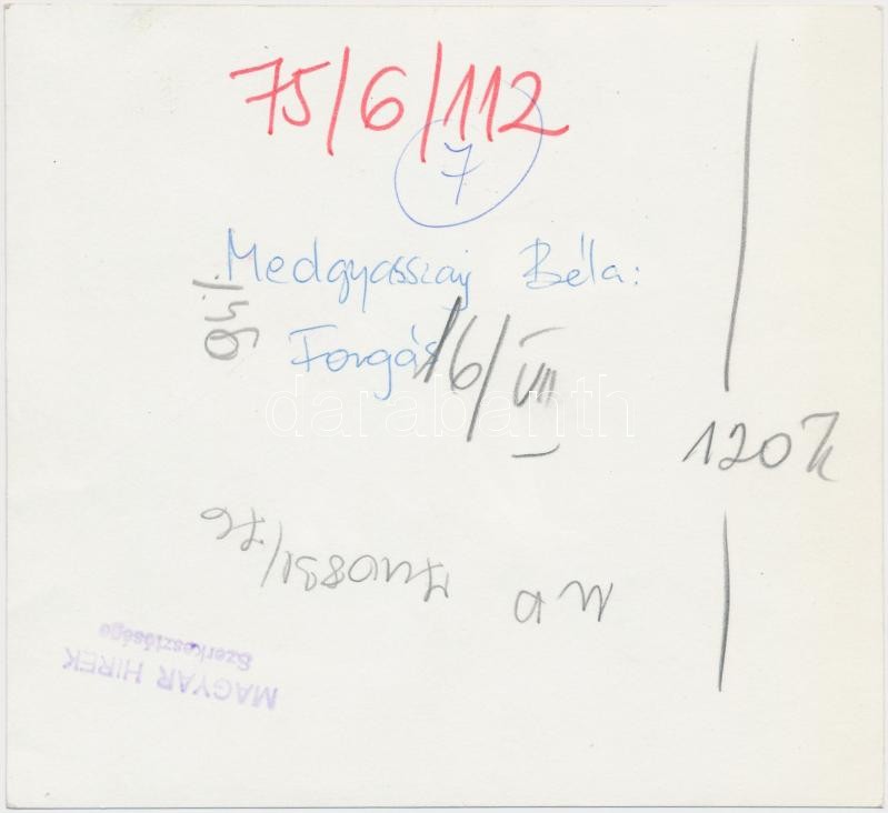 cca 1975 Medgyasszay Béla: Forgás. A hátoldalán pecsét. 14x13 cm. https://www.darabanth.com/de/258-Fernauktion/258.0/Andere-Sammelgebiete/Foto~18/cca-1975-Medgyasszay-Bela-Forgas-A-hatoldalan-pecset-14x13-cm~II1266828