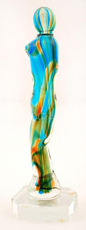 Beschreibung: Muránói női figura, üveg talapzaton, több rétegű, anyagában festett, jelzés nélkül, hibátlan, m:25 cm (talapzattal)