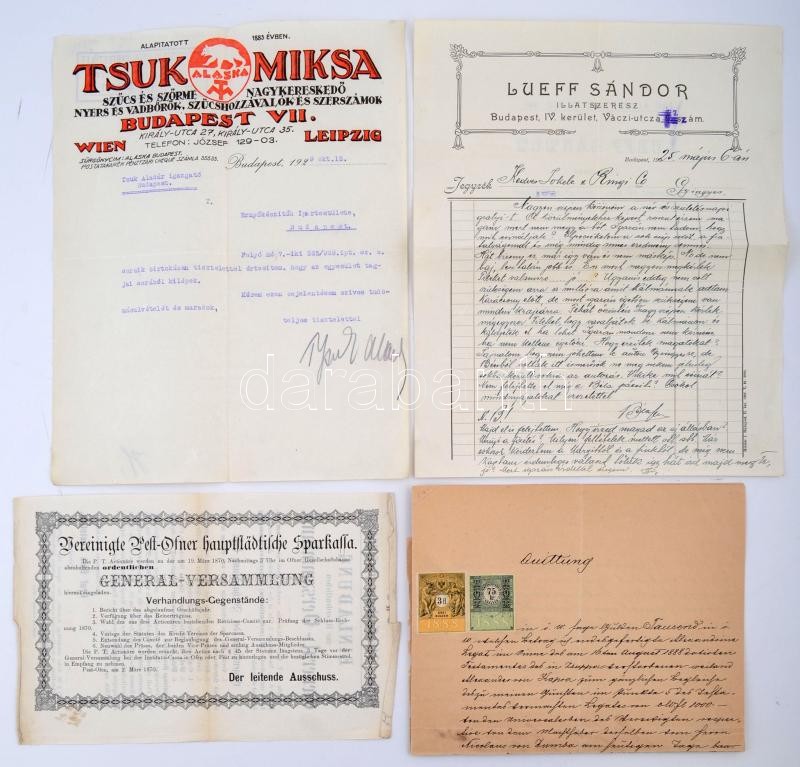Beschreibung: Vegyes papírrégiség tétel. Okmányok, reklámnyomtatványok, kimutatások, levelek stb. vegyesen, összesen 20 db.