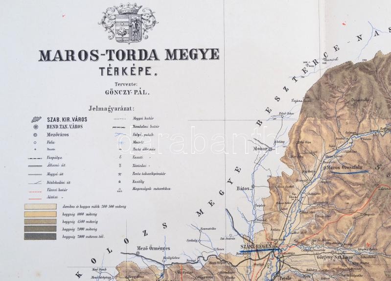 Maros-Torda megye térképe, Gönczy Pál - Kogutowicz Manó: Magyarország megyéinek kézi atlasza. Tervezte: - -, rajzolta: - - Bp. (1890.) Posner Károly Lajos és fia. Sarok levágva, 45x57cm