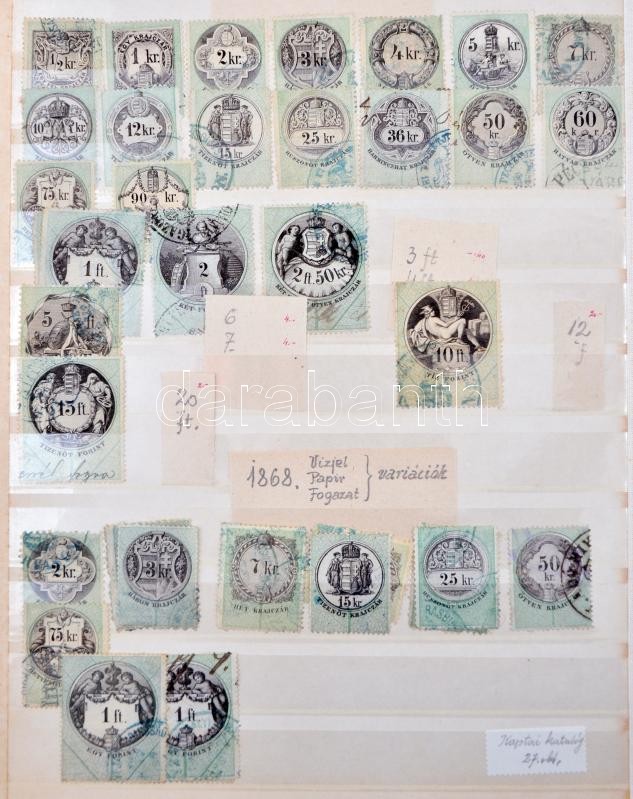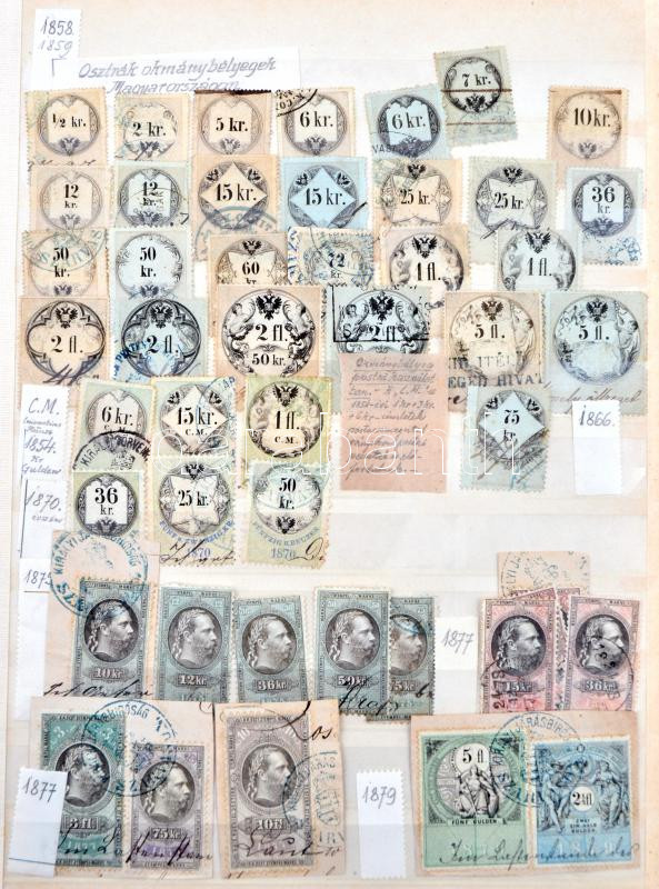 Beschreibung: Tartalmas régi okmánybélyeg gyűjtemény az 1850-es évektől 8 lapos Abria A/4 berakóban